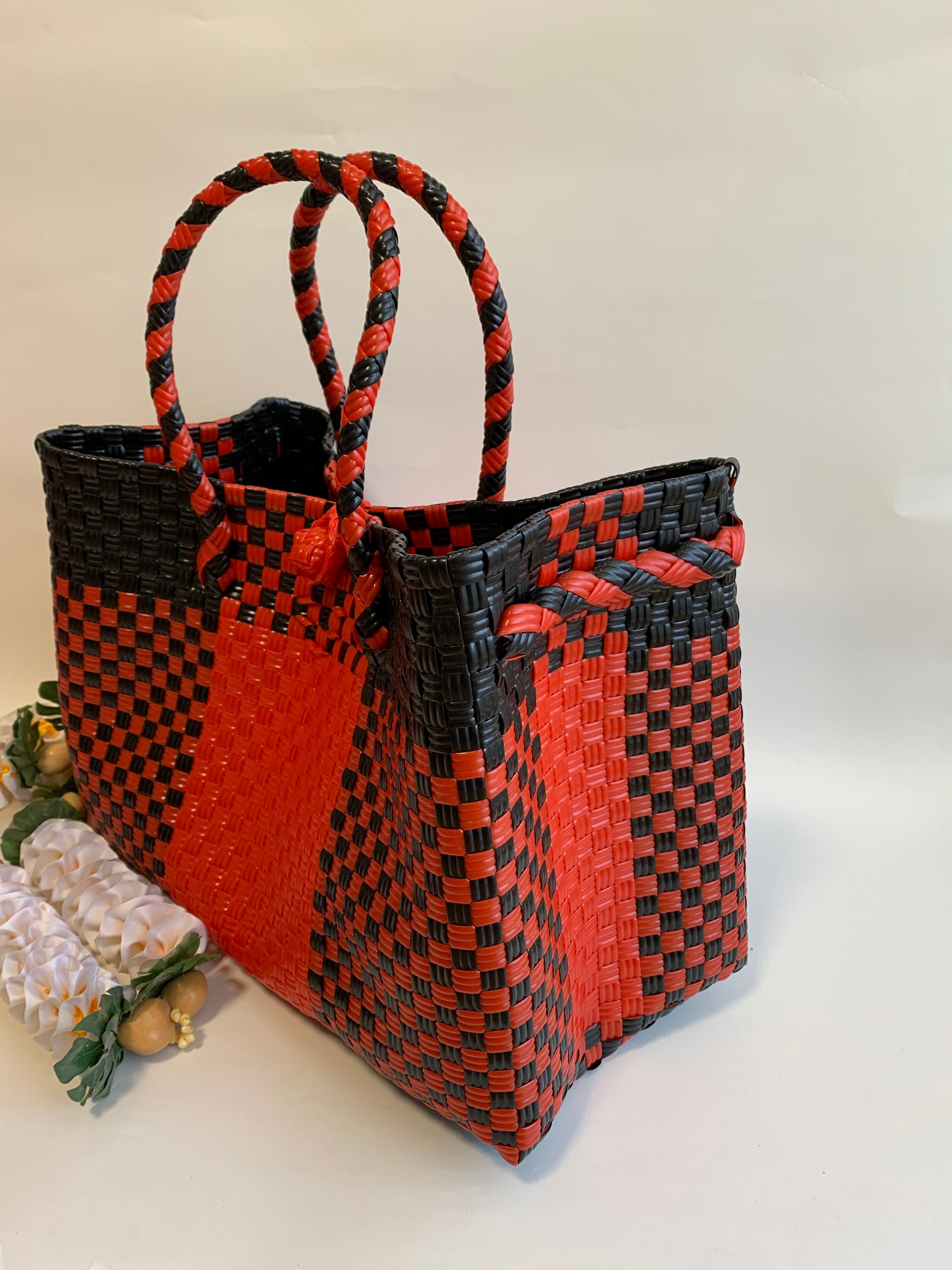 環境に優しい「再生プラスチック」またはPPバンドを手編みしたバッグを販売しています。