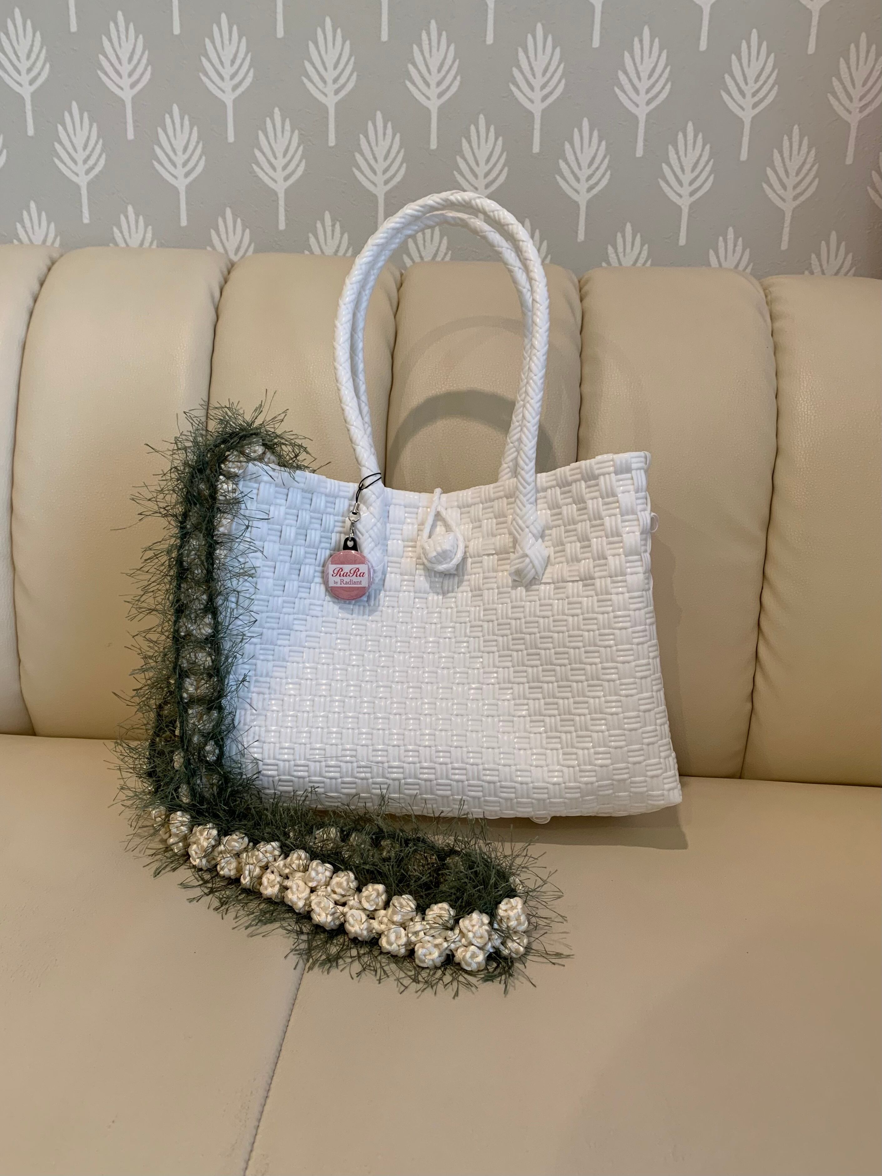 環境に優しい「再生プラスチック」またはPPバンドを手編みしたバッグを販売しています。